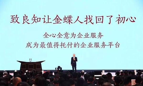 致良知讓金蝶人讓找回了初心,那就是全心全意為企業(yè)服務,成為值得托付的企業(yè)服務平臺。全心全意就是百分之百的把這顆心掏出來,把客戶放在心中。