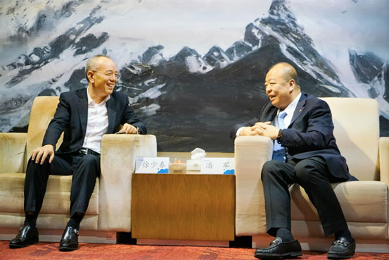 金蝶集團創(chuàng)始人、董事會主席徐少春與花樣年集團董事局主席潘軍交流。