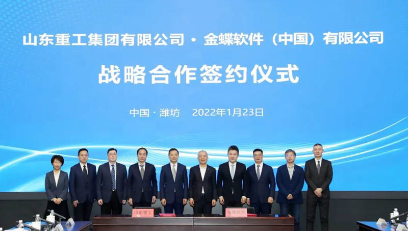 2022年1月23日,金蝶軟件(中國(guó))有限公司(以下簡(jiǎn)稱(chēng)“金蝶”)與山東重工集團(tuán)有限公司(以下簡(jiǎn)稱(chēng)“山東重工”)在濰坊簽署戰(zhàn)略合作協(xié)議。在“加快數(shù)字化發(fā)展建設(shè)數(shù)字中國(guó)”的時(shí)代大背景下,雙方就共同推進(jìn)裝備制造業(yè)數(shù)字化轉(zhuǎn)型、業(yè)務(wù)創(chuàng)新與生態(tài)賦能建設(shè)、數(shù)字化技術(shù)人才培養(yǎng)、數(shù)字化(聯(lián)合)研發(fā)中心合作等方面建立戰(zhàn)略